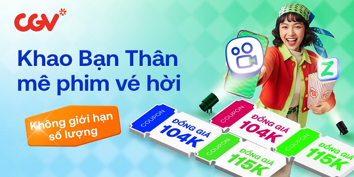 Hoặc bạn có thể cùng đi xem phim với người thân, bạn bè. Zalopay dành cho bạn deal hời khi đặt vé phim CGV chỉ từ 104K trên ứng dụng cực hấp dẫn.