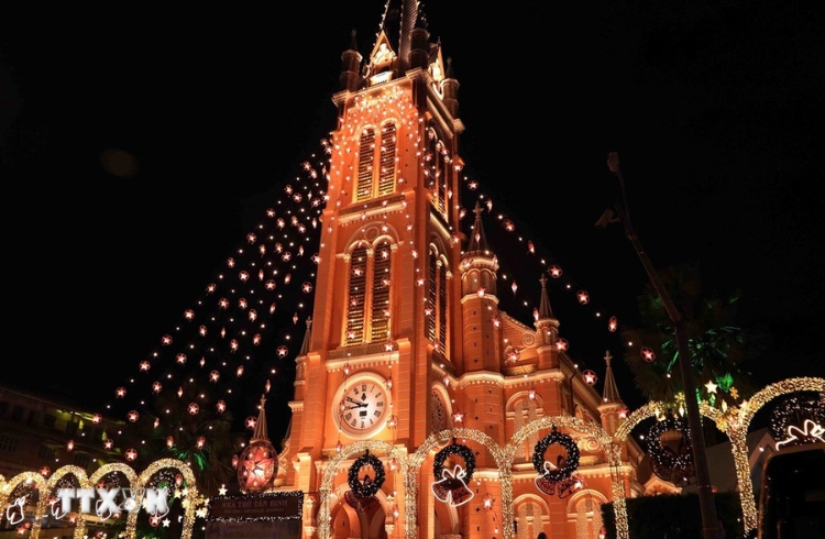 Nhà thờ Tân Định từ lâu đã trở thành biểu tượng Giáng sinh không thể thiếu mỗi dịp cuối năm ở Sài Gòn. Màu hồng đặc trưng nổi bật khiến nơi đây luôn thu hút hàng nghìn du khách và bạn trẻ đến check-in, đặc biệt khi ánh đèn Noel được thắp sáng rực rỡ khắp khuôn viên. Những dây đèn, hang đá, cây thông nên khung cảnh lung linh như cổ tích, khiến ai ghé qua cũng muốn dừng lại lâu hơn một chút để cảm nhận không khí ấm áp của mùa lễ hội. Dù bạn chỉ ghé để chụp vài bức ảnh hay đơn giản là tản bộ ngắm cảnh, Nhà thờ Tân Định luôn xứng đáng là một trong những địa điểm chơi Noel Sài Gòn đẹp và ý nghĩa nhất mà bạn không nên bỏ lỡ.