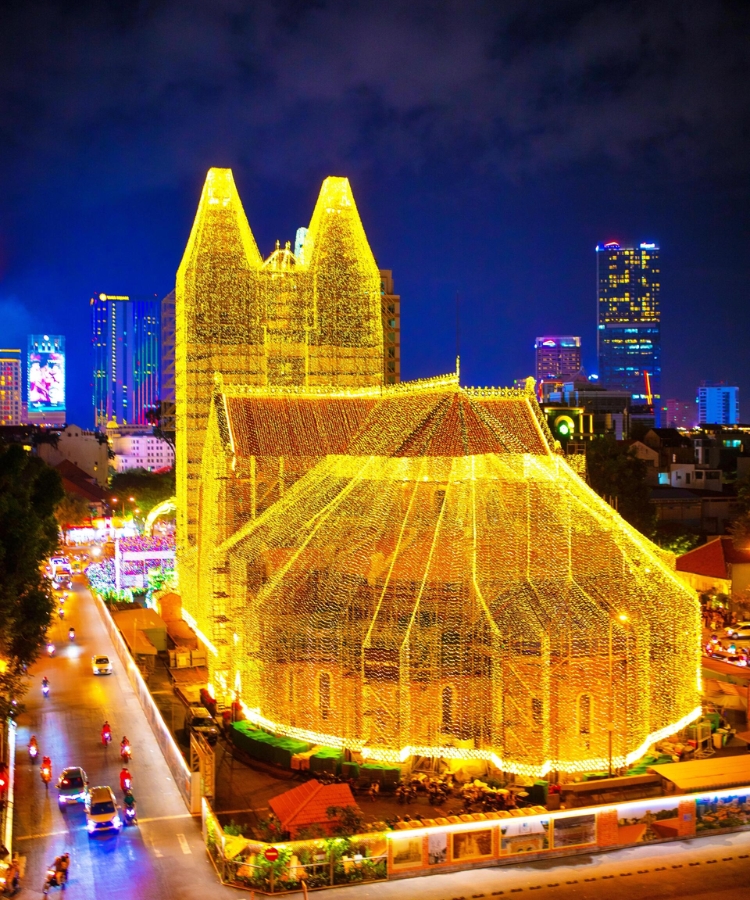 Không chỉ có khung cảnh lung linh, Nguyễn Huệ còn tổ chức các buổi biểu diễn ca nhạc, múa, trình diễn đường phố và countdown cuối năm. Dọc hai bên phố, hàng loạt quán cà phê, nhà hàng và rooftop bar mở cửa đón khách, cho phép bạn vừa thưởng thức đồ uống, vừa ngắm nhìn dòng người tấp nập trong ánh sáng lấp lánh của mùa lễ hội. Đây chính là địa điểm vui chơi Noel trung tâm, nơi bạn có thể cảm nhận trọn vẹn sự sôi động, trẻ trung và đầy năng lượng của Sài Gòn mỗi dịp Giáng sinh.