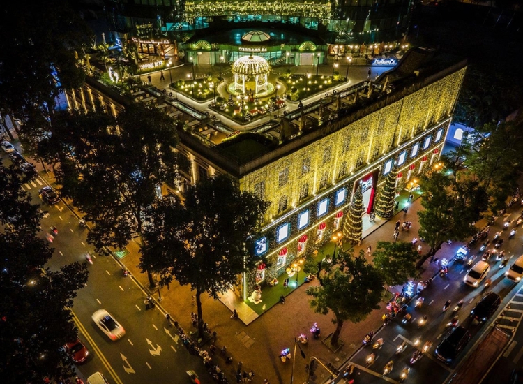Bao quanh Vincom là nhịp sống sôi động của trung tâm thành phố, với những tòa nhà sang trọng, hiện đại và đầy sắc màu. Một buổi tối dạo quanh khu này, ghé Vincom thưởng thức ly cà phê ấm, ngắm đèn Giáng sinh phản chiếu qua ô kính là đủ để cảm nhận trọn vẹn không khí ấm áp, náo nức của Sài Gòn mùa lễ hội.