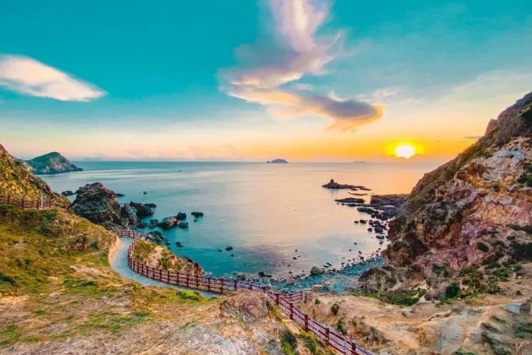 Eo Gió chinh phục du khách bằng dải mỏm đá ôm sát biển và con đường bậc thang gỗ đẹp như phim Hàn. Vào những ngày trời quang, biển chuyển màu xanh ngọc trong vắt rất ấn tượng. Gió ở đây mát quanh năm nên đi bộ ngắm cảnh cực kỳ dễ chịu. Bạn có thể kết hợp tour cano Kỳ Co – Eo Gió trong nửa ngày để tiết kiệm thời gian di chuyển.