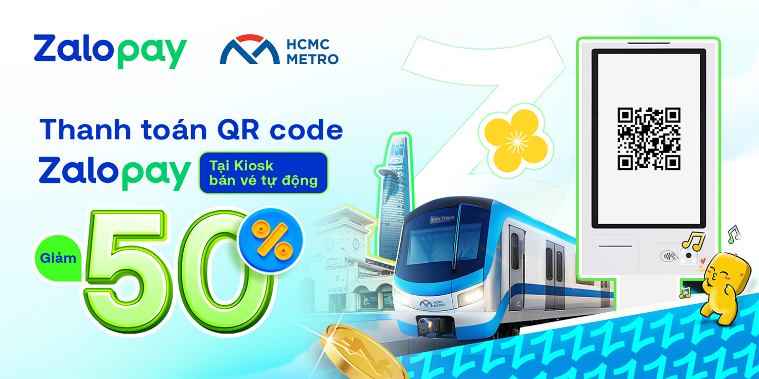 Giảm 50% khi thanh toán vé Metro TP.HCM bằng Zalopay tại kiosk, Tap & Go hoặc trên ứng dụng HURC