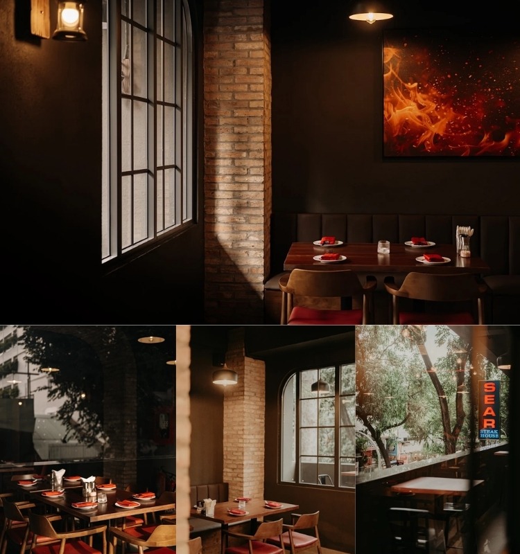 Nhà hàng SEAR Steakhouse tọa lạc tại vị trí đắc địa, thực khách có thể vừa thưởng thức món ăn ngon vừa ngắm nhìn khung cảnh thành phố tuyệt đẹp. Nhà hàng nổi tiếng với món bò bít tết được chế biến trên lò nướng than, tạo nên hương vị khói đặc trưng và độ giòn bên ngoài nhưng vẫn giữ được độ mọng nước bên trong. Thực đơn của nhà hàng steak này tập trung vào các loại thịt bò hảo hạng nhập khẩu như Wagyu và Black Angus, mang đến trải nghiệm ẩm thực cao cấp với chất lượng tuyệt hảo. Không gian SEAR Steakhouse rộng rãi, được thiết kế theo phong cách tinh tế và sang trọng, tạo nên một bầu không khí lý tưởng cho những buổi tối lãng mạn hoặc các sự kiện quan trọng.