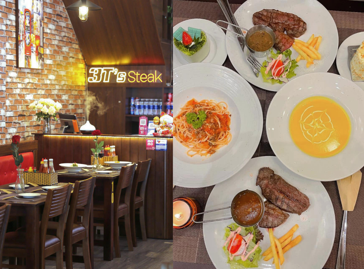 Nhà hàng 3T's Steak nổi tiếng với các món beefsteak được chế biến từ thịt bò nhập khẩu cao, mềm mọng, có độ béo vừa phải. Mỗi suất ăn được phục vụ kèm các loại rau củ tươi ngon và sốt đa dạng như sốt phô mai, sốt nấm, sốt tiêu xanh, đem lại trải nghiệm ẩm thực tuyệt vời. Ngoài beefsteak, nhà hàng còn phục vụ các món Âu khác như mì Ý, súp kem và các món tráng miệng hấp dẫn. Nhà hàng 3T's Steak được thiết kế theo phong cách hiện đại nhưng không gian vẫn ấm cúng và sang trọng.
