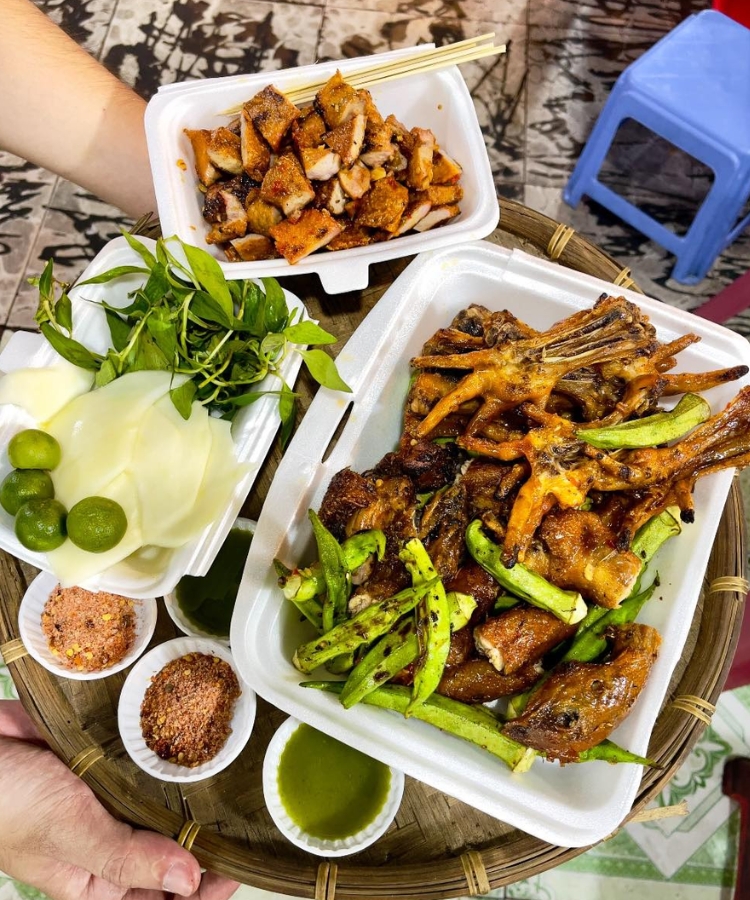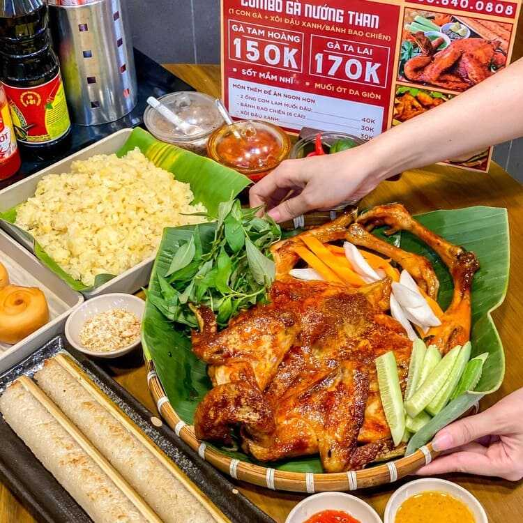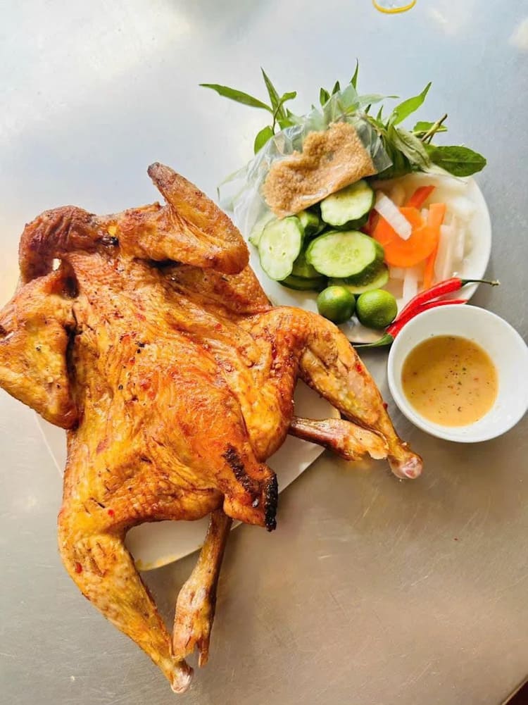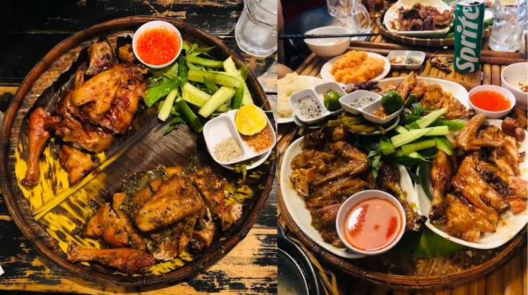 Nếu đang tìm quán gà nướng ở Sài Gòn và bạn là fan của món gà nướng muối ớt cay nồng, thơm lừng thì BIN BO chắc chắn là điểm đến không thể bỏ qua. Quán nổi tiếng với những con gà ta tươi, được ướp muối ớt đậm đà và nướng trên bếp than hồng đến khi lớp da cháy cạnh, giòn rụm mà không hề khô. Vị cay mặn vừa phải kết hợp với mùi thơm của sả và tỏi tạo nên hương vị rất “bắt miệng”. Ngoài ra, quán còn phục vụ thêm các món ăn kèm như gỏi gà, khoai tây chiên, xôi chiên, rất hợp cho nhóm bạn tụ tập hoặc các buổi tiệc nhỏ.