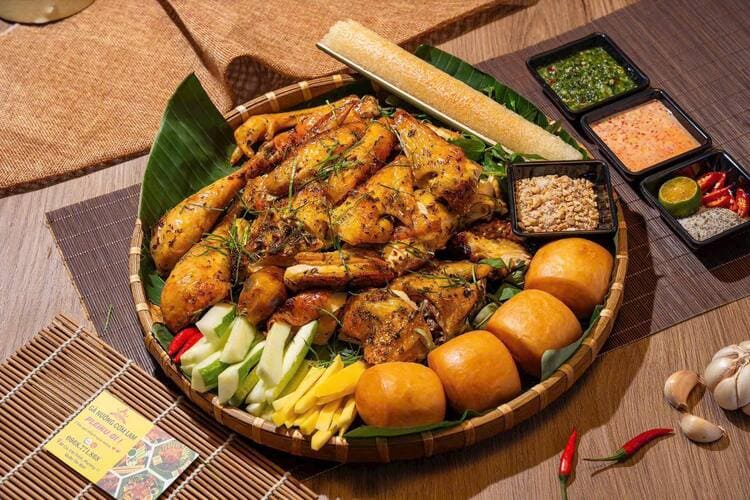 Gà Nướng Cơm Lam Pleiku Ơi đậm chất núi rừng Tây Nguyên giữa lòng Sài Gòn, mang đến trải nghiệm ẩm thực mộc mạc nhưng đặc sắc. Gà được nướng nguyên con trên than củi, da vàng ươm, thịt thấm vị muối ớt đặc trưng Pleiku. Món ăn càng ngon hơn khi dùng kèm cơm lam nướng trong ống tre, dẻo thơm và béo bùi. Quán giữ được phong vị đặc trưng của miền cao nguyên, khiến thực khách vừa ăn vừa như được “du ngoạn” đến vùng đất Pleiku đầy nắng gió.
