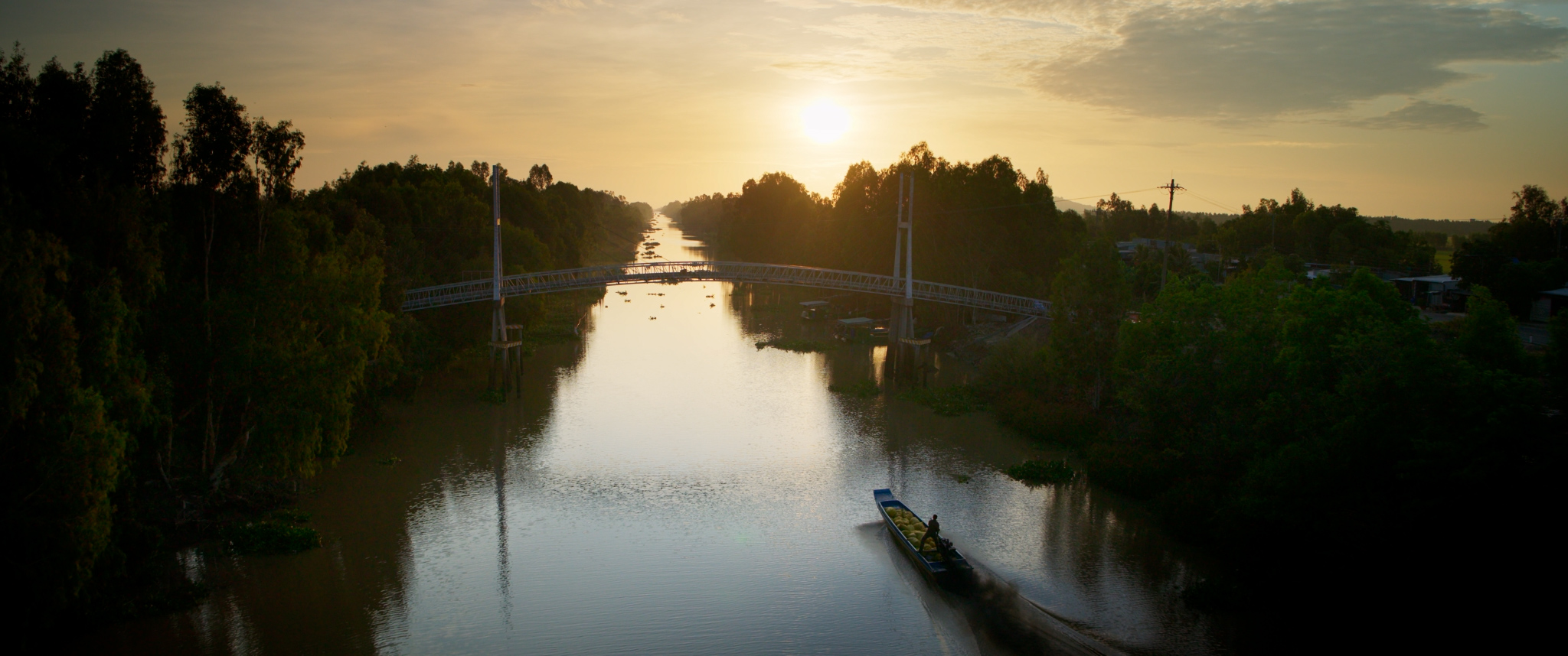 Ngoài ra, những khung hình flycam tại Tri Tôn mở ra một miền Tây khác: núi non, cánh đồng trải dài và hoàng hôn nhuộm cam toàn bộ không gian. Phần màu phim được xử lý ấm và có chiều sâu, tạo nên bản sắc thị giác riêng cho tác phẩm.