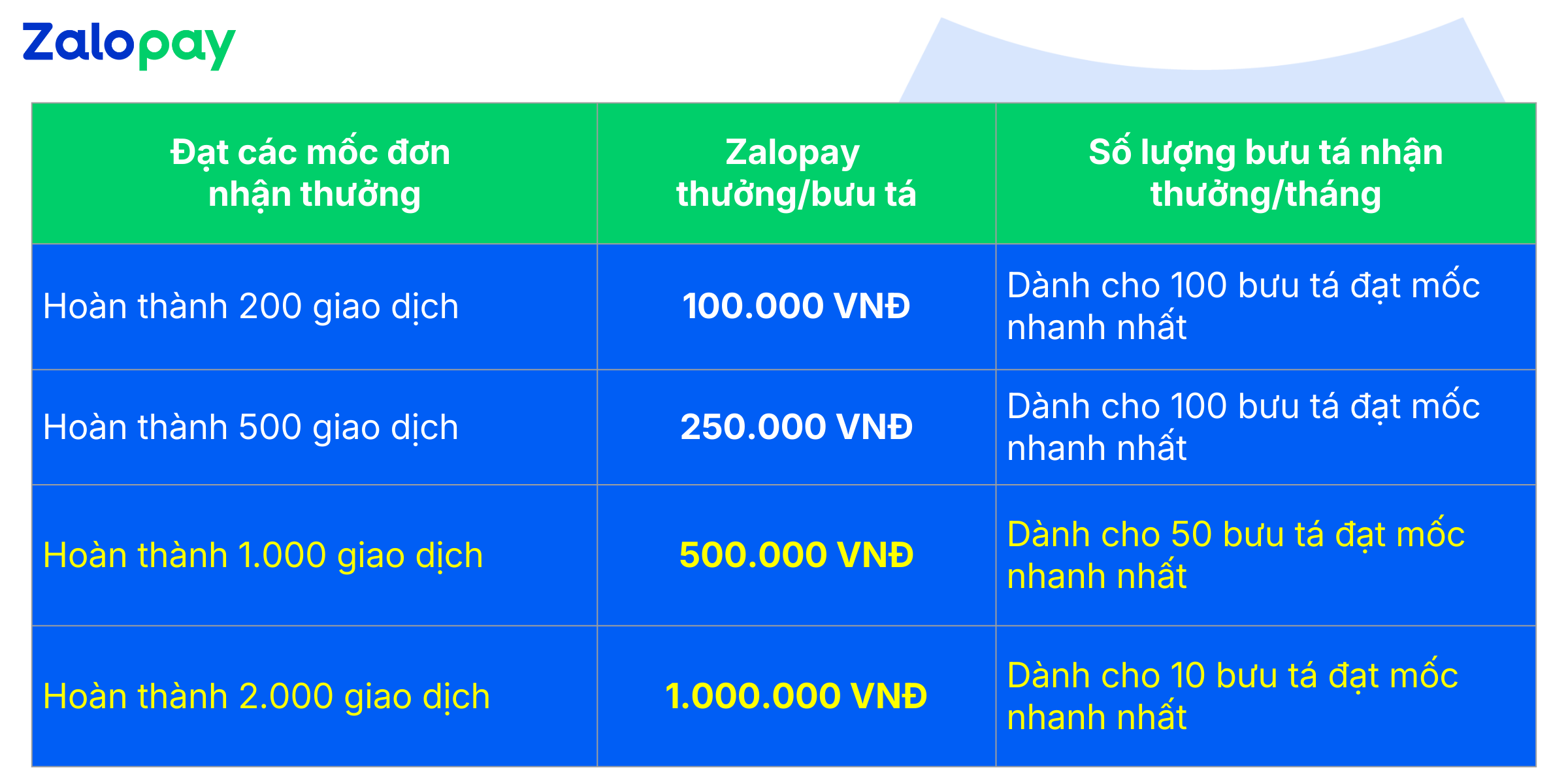 - Không trao thưởng cho bưu tá chưa tạo/chưa xác thực định danh tài khoản Zalopay đến hết ngày 31/01/2026.