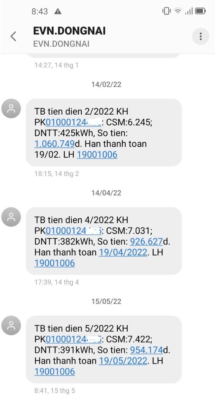 Kiểm tra mã khách hàng tiền điện qua tin nhắn từ EVN