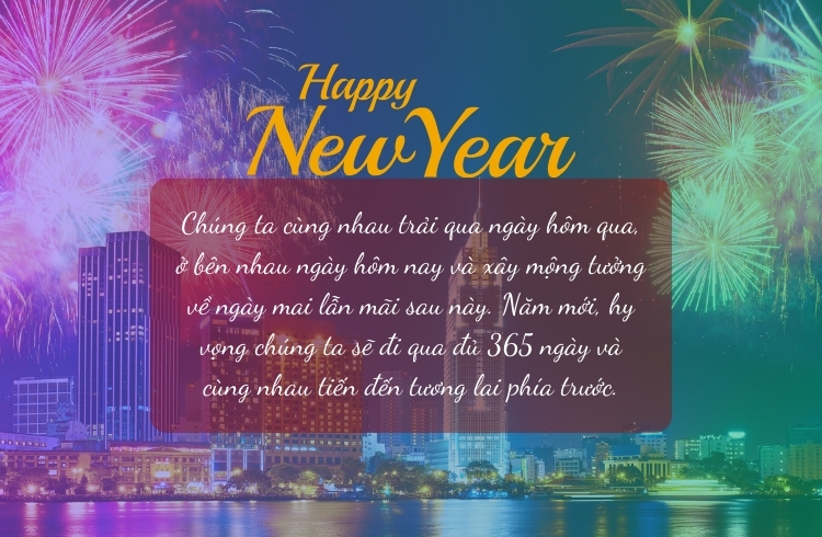 - Nếu có điều gì khiến anh háo hức chờ đón năm mới, thì đó là viễn cảnh được cùng em tạo thêm những kỷ niệm mà sau này nhìn lại, chúng ta đều mỉm cười. Chúc em năm mới an yên, hạnh phúc, và cảm ơn em vì đã khiến cuộc đời anh trở nên đáng sống hơn.