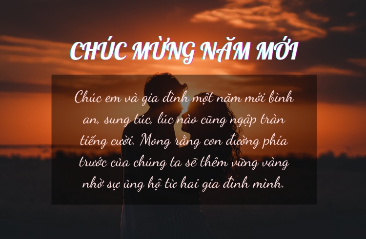 - Chúc em đón năm mới trọn vẹn với thật nhiều niềm vui và khoảnh khắc đáng nhớ.
