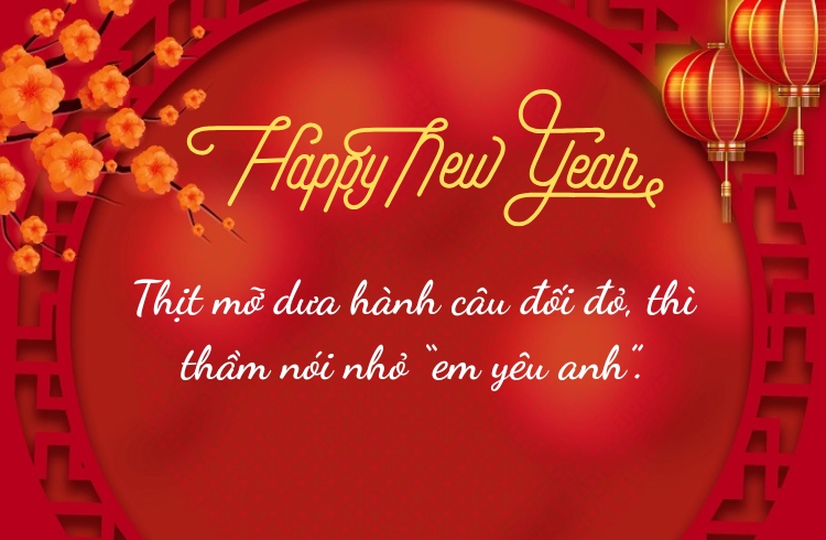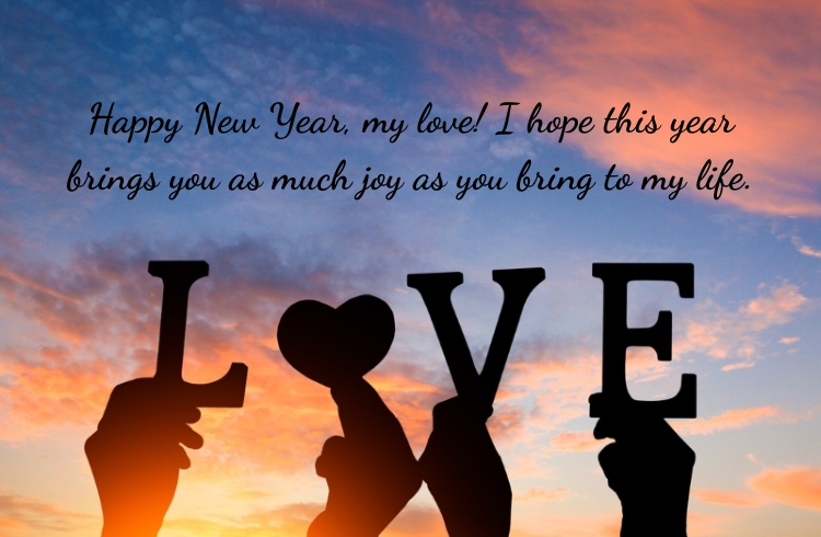 Tạm dịch: Chúc mừng năm mới, tình yêu của anh! Hy vọng năm nay sẽ mang đến cho em nhiều niềm vui như em mang đến cho cuộc đời anh.