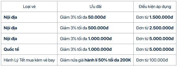 - Thời gian vé Tết được áp dụng ưu đãi : 01/02/2026 – 01/03/2026 (giai đoạn vé Tết) vé máy bay, tàu hảo, xe khách.
